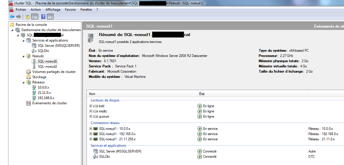 récemment je me suis éclaté avec la mise en place d’un cluster de basculement SQL:
